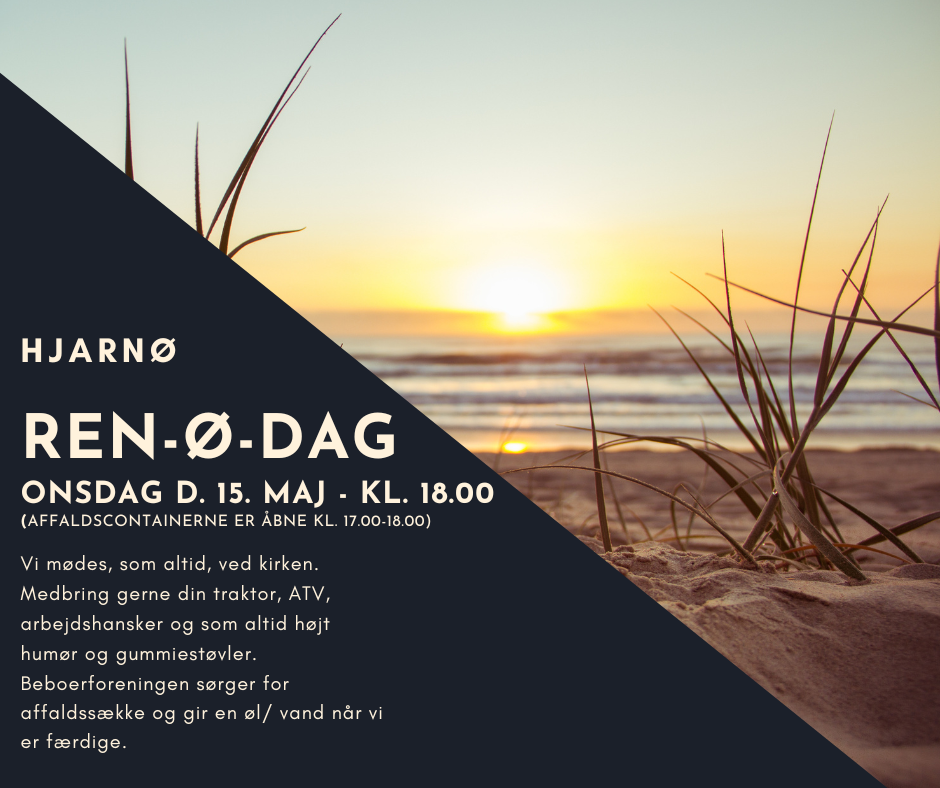 REN-Ø-DAG PÅ HJARNØ den 15. maj 2024. Kom og vær med til at holde vores dejlige ø fri for affald. Vi mødes ved kirken kl. 18.00