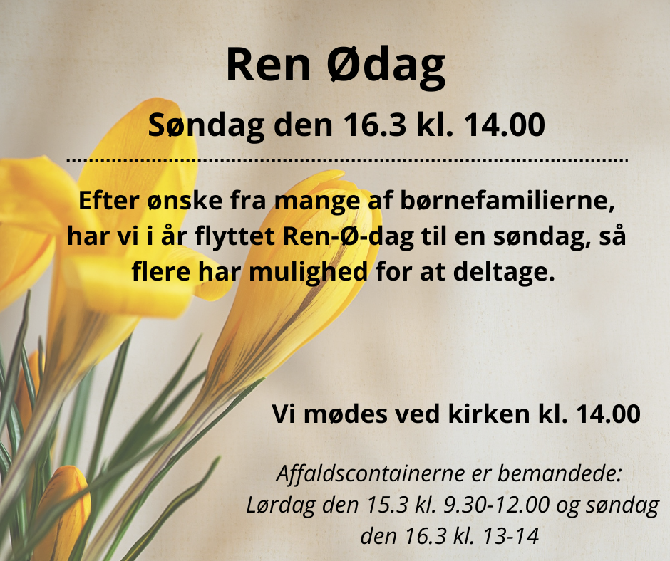 REN-Ø-DAG, SØNDAG DEN 16.3.2025 KL. 14.00 Vi holder af vores smukke ø, og sætter stor pris på at her ikke ligger affald og flyder. Hvert år samler vi affald på hele øen og langs vandkanten, og glæder os over, at alle gæster og turister er så gode til at tage deres affald med ned til…